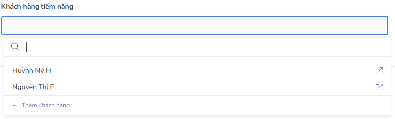 Danh sách các lựa chọn của trường Khách hàng tiềm năng khi người dùng tạo bản ghi của đối tượng Cơ hội bán hàng sẽ là: